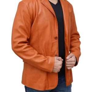 Versatile Styling: Firstly, this mens leather blazer suits casual or formal settings, pairing perfectly with jeans or trousers.