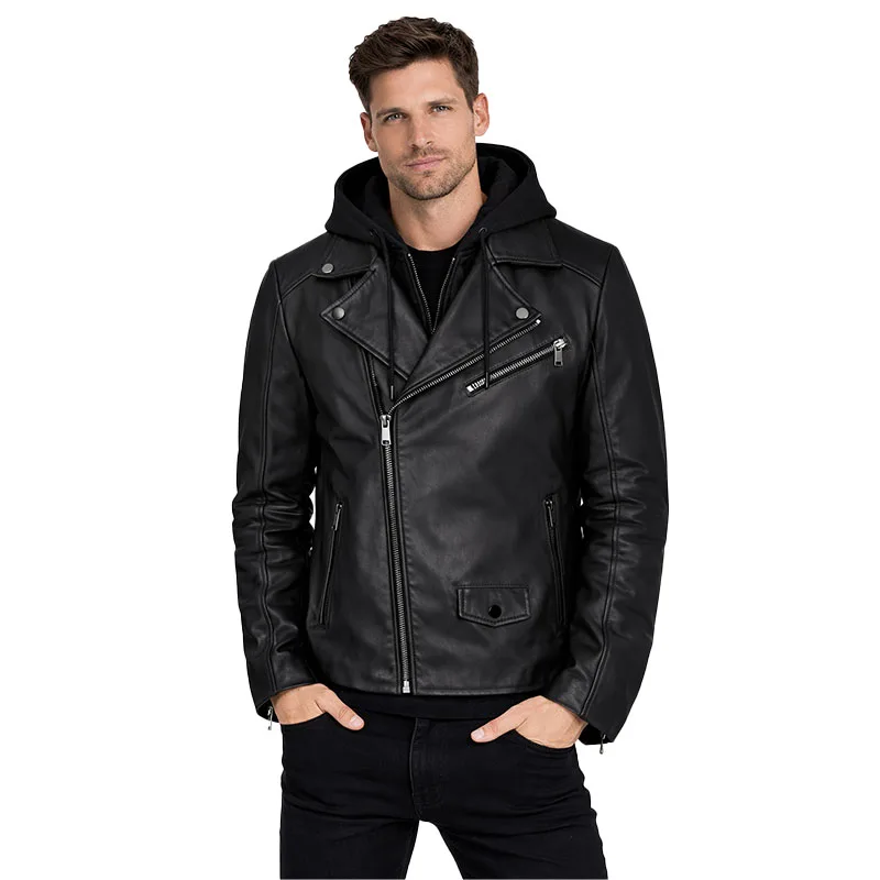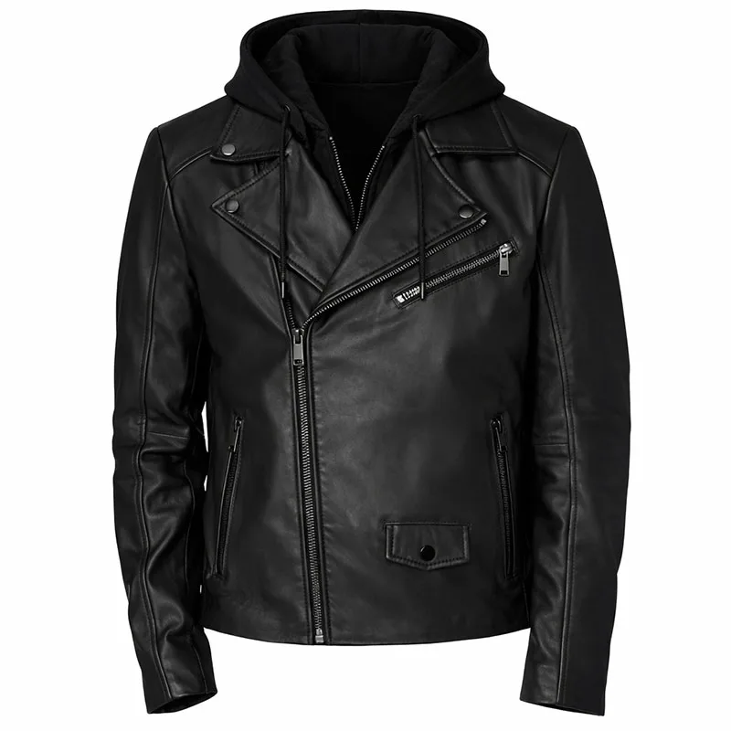 Whether you’re out on the bike or downtown, the black leather jacket with hood mens style offers great functionality and modern edge.