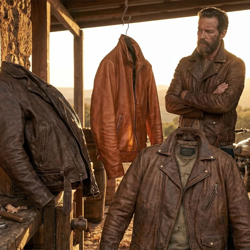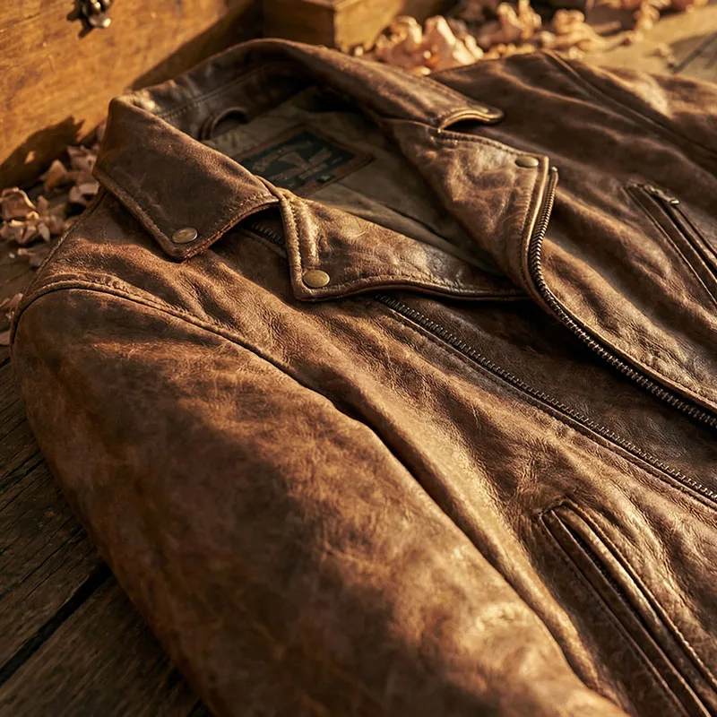 Subtle aging details give each piece depth and personality. Every jacket feels uniquely vintage. The tailored fit creates a sharp silhouette. It also ensures comfort for everyday wear.