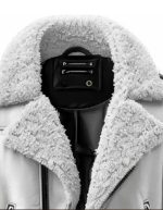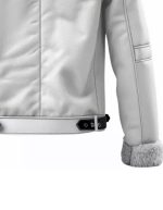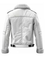 - Premium Leather: High-quality white leather exterior for a sleek, durable finish in this leather shearling jackets.