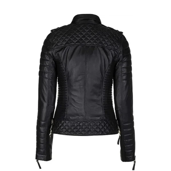 Reinforced Stitching: Strengthens the women’s leather jacket bomber for lasting durability and rugged charm.